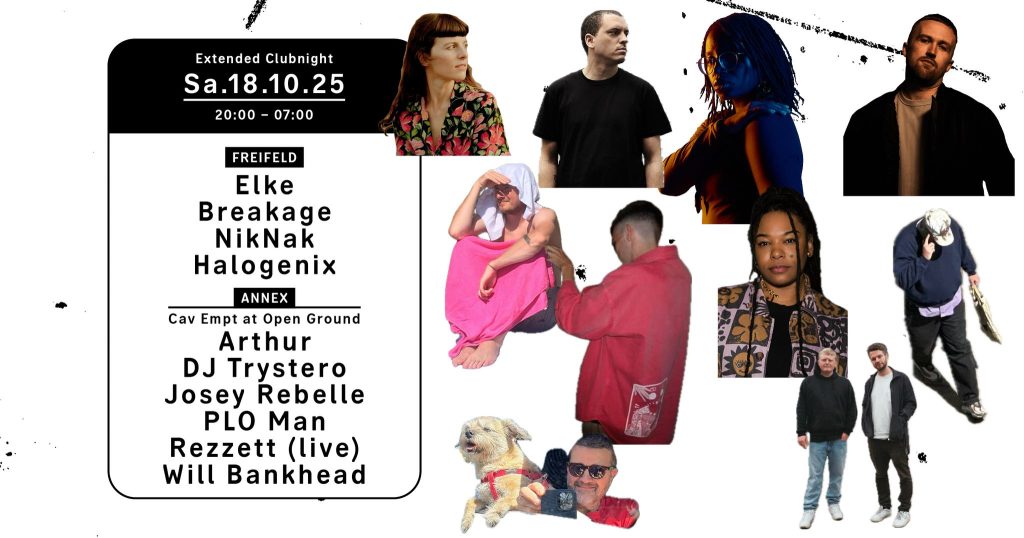 Location: Wuppertal (DE) โ€“ Style: Ambient, Experimental, Deep DnB, Liquid Funk, Autonomic Sound, Hip-Hop, Dubstep, Grime, Techno, House, Amapiano, Dub โ€“ Entrance: 25โ‚ฌ – Time: 20.00-07.00 โ€“ Line up: dBridge, NikNak, Halogenix, Elke, Arthur, DJ Trystero, Josey Rebelle, PLO Man, Rezzet (live), Will Bankhead
