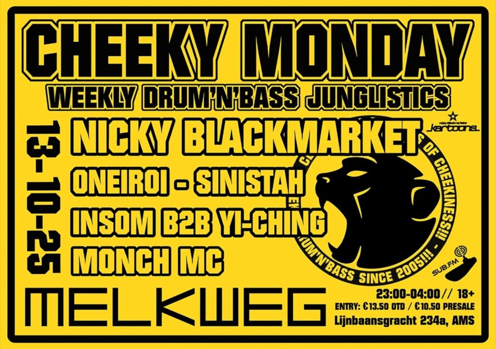 Location: Amsterdam (NL) โ€“ Style: Jump Up, Jungly DnB โ€“ Entrance: 11โ‚ฌ to 14โ‚ฌ – Time: 23.00-04.00 โ€“ Line up: Nicky Blackmarket, Oneiroi, Sinistah, Insom B2B Yi-Ching, Multiplex