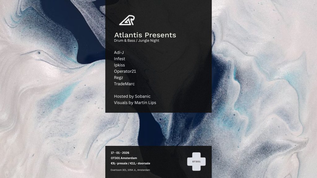 Location: Amsterdam (NL) โ Style: Jungle โ Entrance: 10โฌ to 11โฌ – Time: 22.00-03.00 โ Line up: Adi-J, Infest, Ipkiss, Operator21, Regz, TradeMarc, Sobanic, VJ Martin Lips