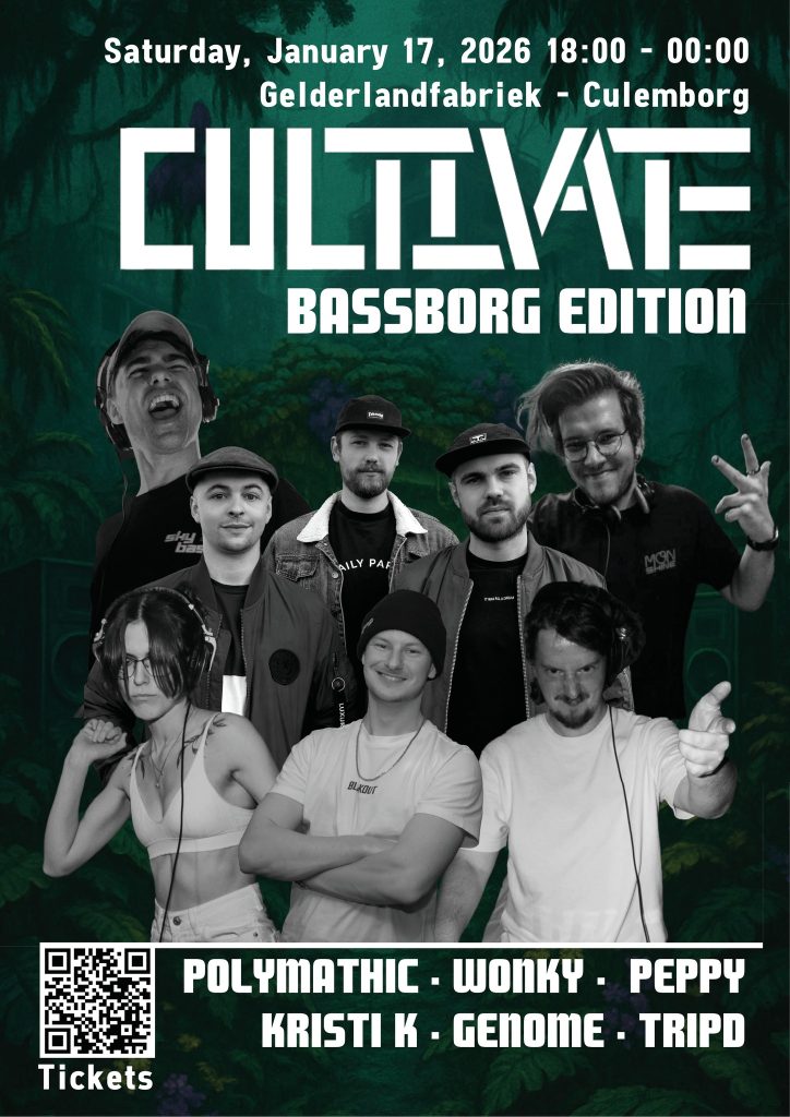 Location: Culemborg (NL) โ Style: Deep DnB, Dancefloor DnB, Neurofunk โ Entrance: 15โฌ tro 20โฌ – Time: 18.00-23.45 โ Line up: Polymathic, Wonky, Peppy, Genome, Kristi K, Le!p, Trip D