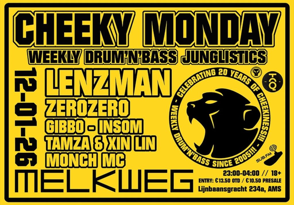 Location: Amsterdam (NL) โ Style: Liquid Funk, Deep DnB & more โ Entrance: 11โฌ to 14โฌ – Time: 23.00-04.00 โ Line up: Lenzman, ZeroZero, Gibbo, Tamza & Xin Lin, Insom, Multiplex