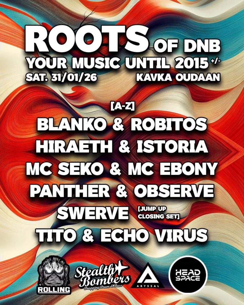 Location: Antwerp โ Style: Varied DnB โ Entrance: 16โฌ to 24โฌ โ Time: 23.00-05.00 โ Line up: Blanko & Robitos, Hiraeth & Istoria, MC Seko & MC Ebony, Panther & Observe, Swerve, Tito & Echo Virus