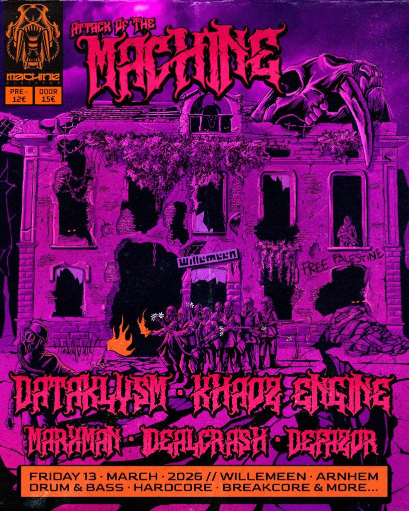 Location: Arnhem (NL) โ Style: Hardcore, Industrial, DnB, Terror โ Entrance: 10โฌ to 15โฌ – Time: 23.59-05.00 โ Line up: Dataklyzm, Khaoz Engine, Marxman, Defazor, Idealcrash