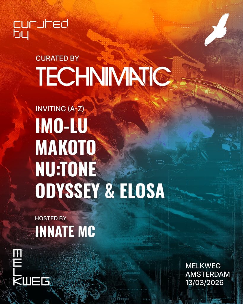 Location: Amsterdam (NL) โ Style: Liquid Funk โ Entrance: 15โฌ to 25โฌ – Time: 23.30-??? โ Line up: Technimatic, Imo-Lu, Makoto, Nu:Tone, Odyssey B2B Elosa, Innate MC
