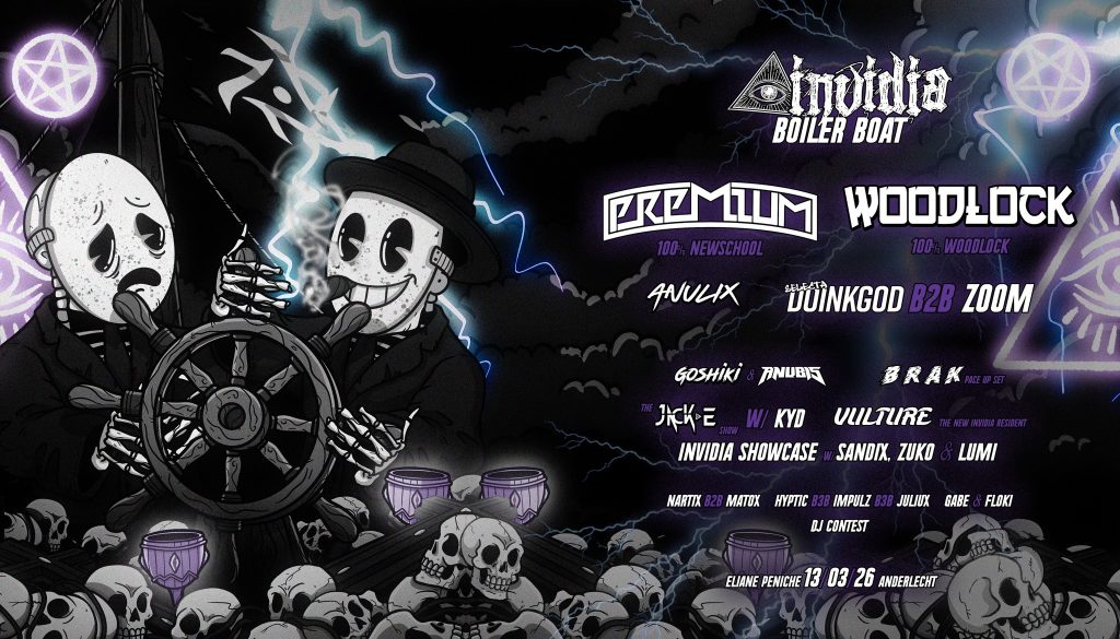 Location: Brussels โ Style: Jump Up โ Entrance: 11โฌ to 21โฌ – Time: 22.00-06.00 โ Line up: Anulix, Doinkgod B2B ??? โ Goshiki & Anubis, Brak, Jack-E, The New Resident, Invidia showcase (Sandix, Zuko & Lumi), Nartix B2B Matox, Hyptic B3B Impulz B3B Juliux, Gabe & Floki, DJ Contest