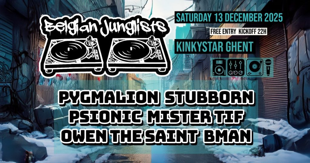 Location: Gent โ Style: Jungle, Ragga Jungle, Hardcore, Breakcore โ Entrance: Free โ Time: 22.00-05.00??? โ Line up: Pygmalion, Stubborn, Psionic, Mister Tif, Owen The Saint, Bman
