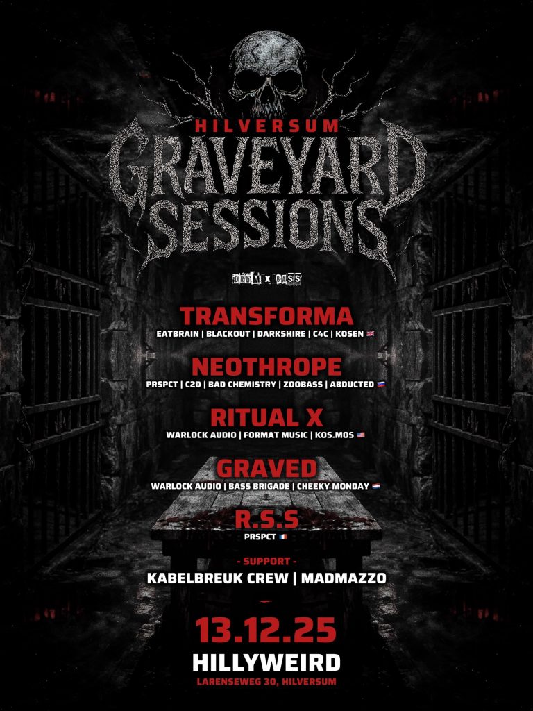Location: Hilversum (NL) โ Style: Neurofunk, Technoid, Crossbreed, Techstep โ Entrance: 21โฌ to 26โฌ – Time: 22.00-??? โ Line up: Transforma, Neothrope, Ritual X, Graved, R.S.S, Kabelbreuk crew, Madmazzo