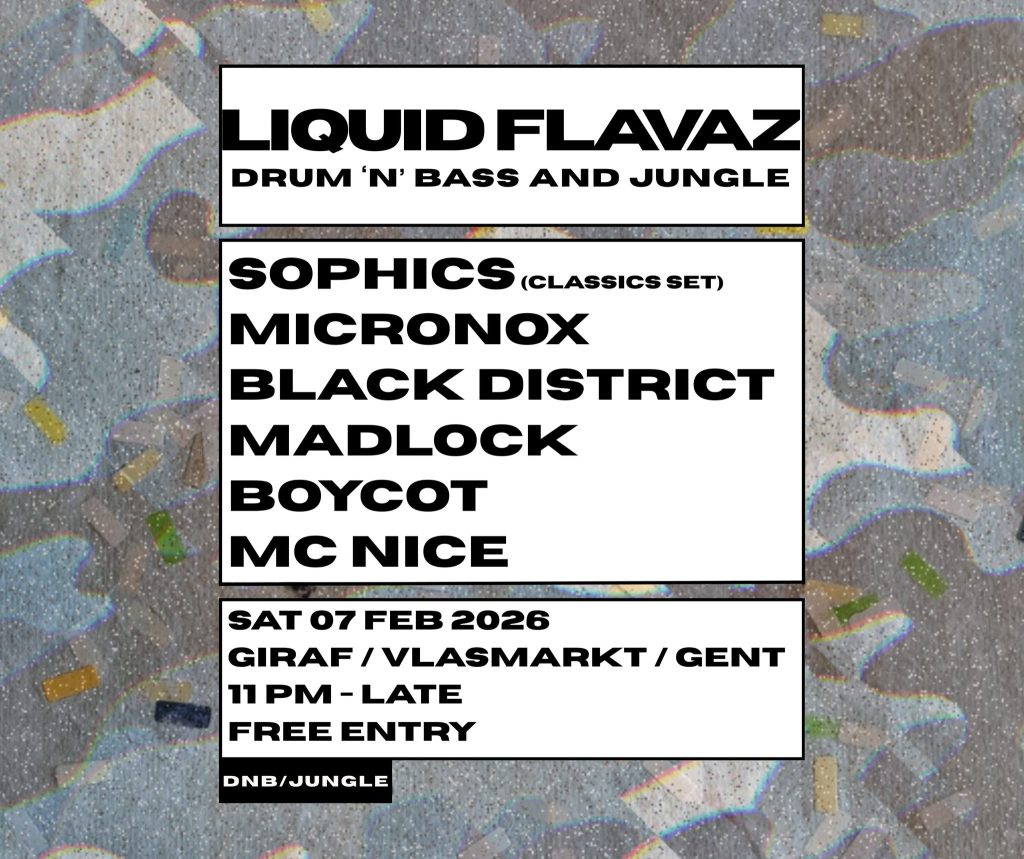 Location: Gent – Style: DnB, Jungle – Entrance: Free – Time: 23.00-late – Line up: Sophics (classics set), Micronox, Black District, Madlock, Boycot, MC Nice