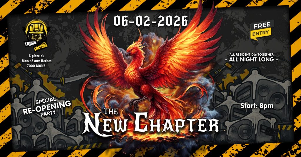 Location: Erquelinnes (FR) – Style: Techno, DnB, Hardcore – Entrance: Free – Time: 20.00-02.00 – Line up: R.A.F, Dirty Muttz, The Titaneye