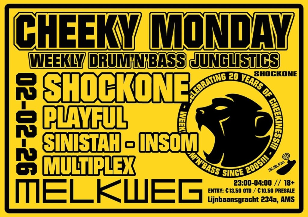 Location: Amsterdam (NL) – Style: Dancefloor DnB & more – Entrance: 11€ to 14€ – Time: 23.00-04.00 – Line up: ShockOne, Playful, Sinistah, Insom, Multiplex