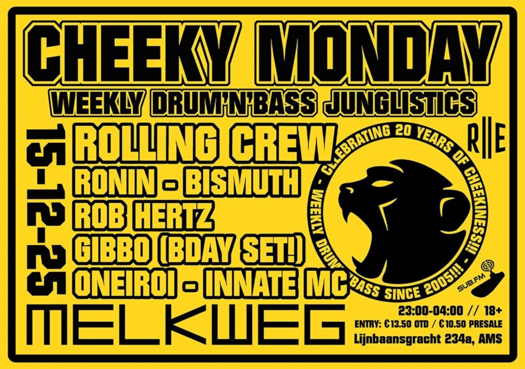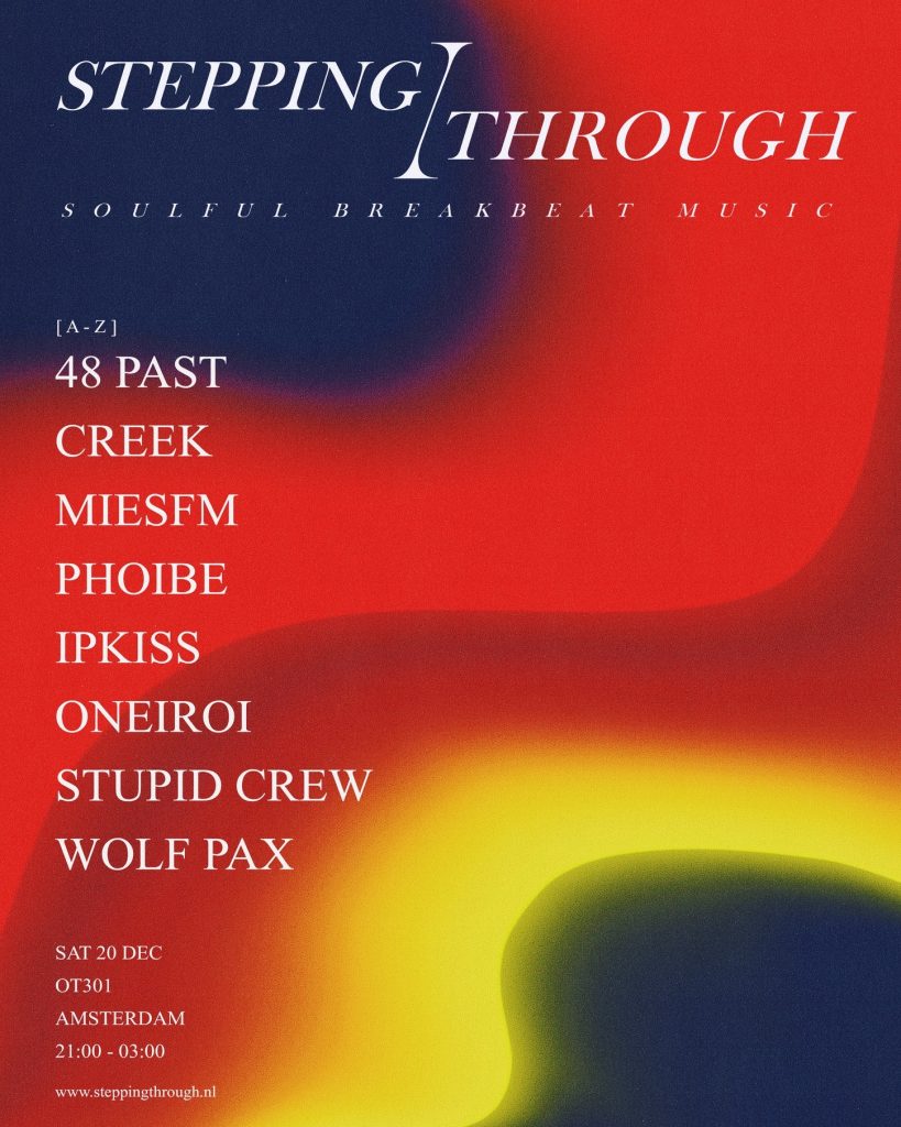 Location: Amsterdam (NL) โ Style: DnB, Jungle, Breakbeat โ Entrance: 11โฌ to 12โฌ – Time: 22.00-03.00 โ Line up: Phoibe, Mies FM, Oneiroi, 48 Past, Ipkiss, Creek, Stupid crew, Wolf Pax