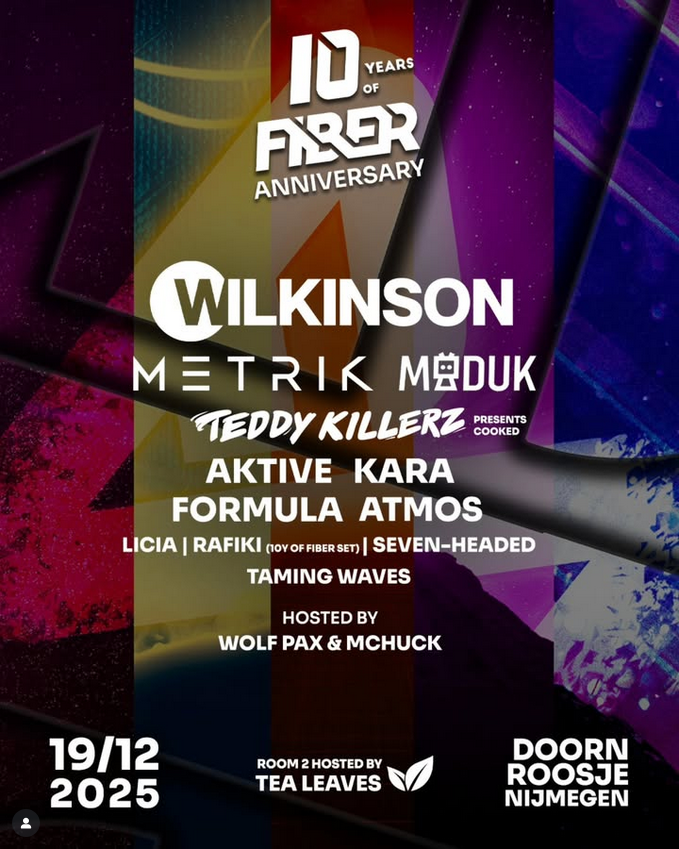 Location: Nijmegen (NL) โ Style: Varied DnB โ Entrance: 36โฌ to 43โฌ โ Time: 23.00-??? โ Line up: Wilkinson, Metrik, Maduk, Teddy Killerz, Aktive, Kara, Formula, Atmos, Licia, Rafiki, Seven-Headed, Taming Waves, Wolf Pax, MChuck