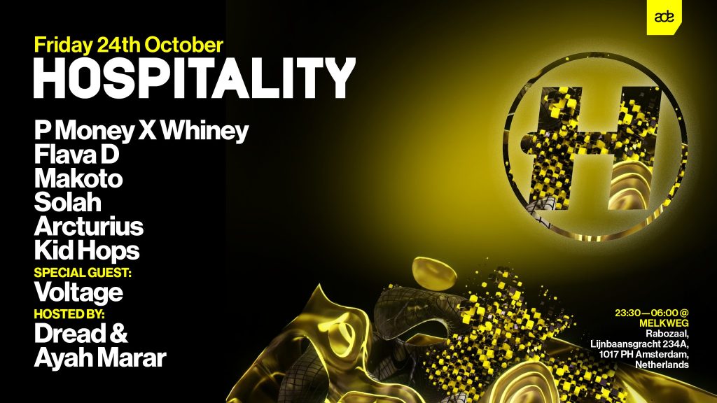 Location: Amsterdam (NL) โ€“ Style: Liquid Funk, Dancefloor DnB & more โ€“ Entrance: 37โ‚ฌ โ€“ Time: 23.30-06.00 โ€“ Line up: P Money x Whiney, Flava D, Makoto, Solah, Arcturius, Kid Hops, Voltage, MC Dread, Ayah Marar